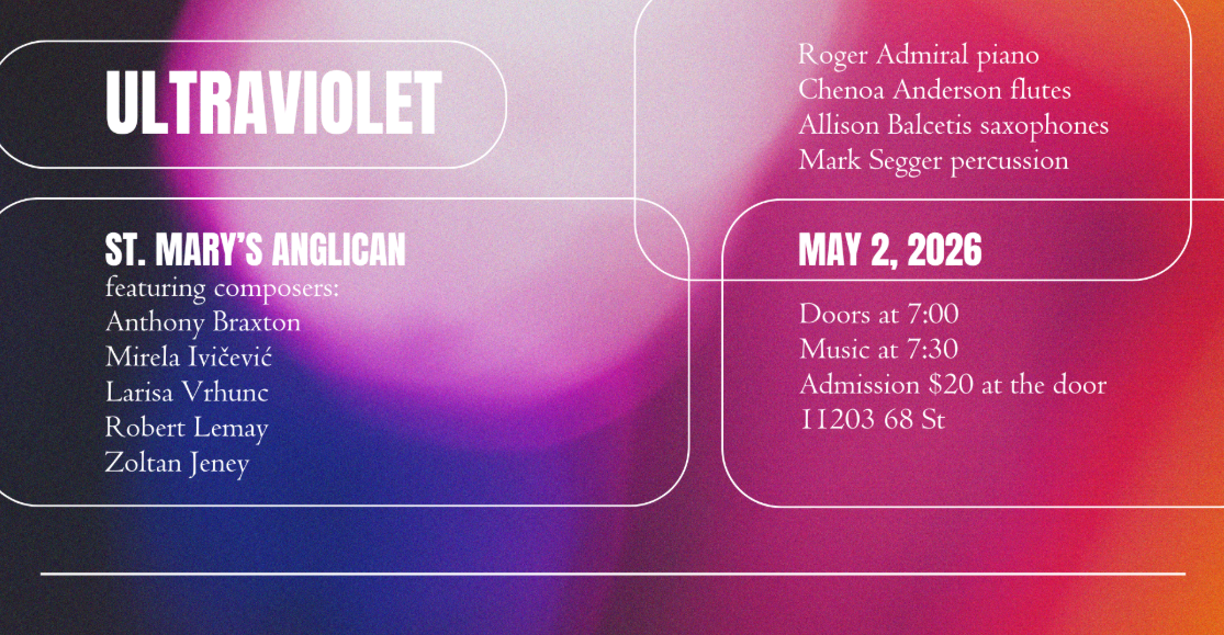 Experience this as UltraViolet performs music by Anthony Braxton, Mirela Ivičević, Larisa Vrhunc, Robert Lemay, and Zoltan Jeney